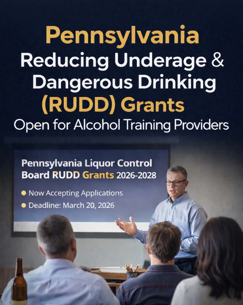Pennsylvania PLCB RUDD Grants (2026–2028): Funding Opportunity for Alcohol Education & Compliance Training Providers